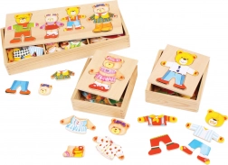 Das Anziehpuzzle Bärin von BIGJIGS TOYS beschäftigt Kinder mit dem Zusammensetzen von Gesichtern mit verschiedenen Ausdrücken und farbenfrohen Outfits. Die Tafel dient als Unterlage und zugleich als Deckel der Box, sodass die Teile leicht verstaut werden können und das Puzzle auch auf Reisen ideal ist.