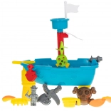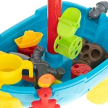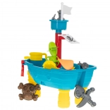 Der Spieltisch in Form eines Piratenschiffs ist mehr als nur ein Tisch. Es ist ein Kinderspielplatz, der für kreatives Spielen mit Wasser und Sand gedacht ist.