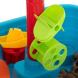 Der Sandkasten ist mit zahlreichen Accessoires ausgestattet, darunter Formen, Kanonen und kleine Schiffe, die den Kindern endlose Spiel- und Baumöglichkeiten bieten.