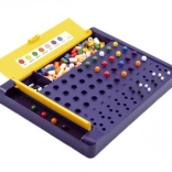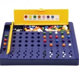 Übersichtliches Brett mit Löchern und Fächern für die farbigen Stifte sorgt für Ordnung und bequemes Spielen zu Hause und unterwegs.