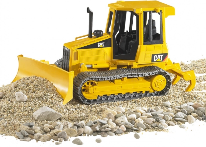 Modell mit detailgetreuer Ausführung, typisch für Maschinen der Marke CAT, einschließlich Gummiketten und großer beweglicher Schaufel.