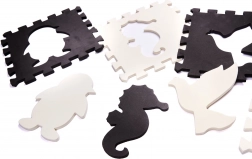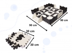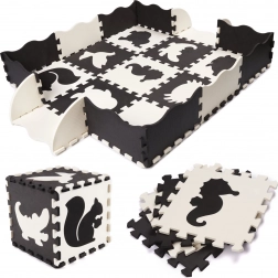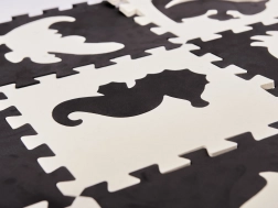 Großes Schaumstoff-Puzzle in Schwarz und Weiß mit abnehmbaren Elementen und interessanten Formen bietet großartigen Spaß für Ihr Kind, das die Welt entdeckt. Dank des Puzzles kann ein sicherer Raum für das Spielen geschaffen werden, in dem der weiche Schaumstoff alle Stürze abfedert.