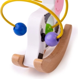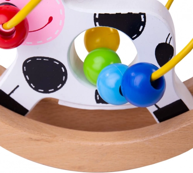Dieses kompakte Motorik-Labyrinth im fröhlichen Kuh-Design bietet Kindern ab 12 Monaten sichere und anregende Unterhaltung. Das Schieben der Perlen entlang des stabilen Metalldrahtes trainiert die Präzision des Griffs, die Fingerfertigkeit und die Bewegungskoordination, während die schaukelnde Basis die Aufmerksamkeit hält und das Gleichgewichtsempfinden fördert.
