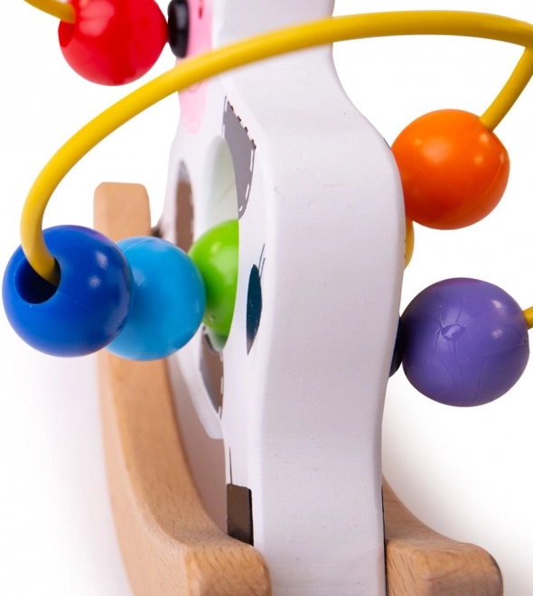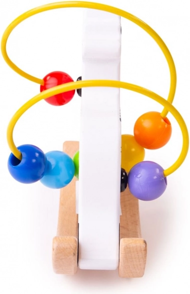 Farbenfrohe Perlen auf einem stabilen Draht motivieren zum Schieben und fördern so den Griff, die Hand-Auge-Koordination und die Geduld.