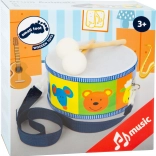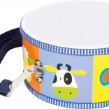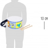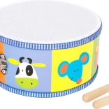 Bunte Kindertrommel mit Tiermotiven von der Marke Small Foot ist ideal für die Entwicklung von Rhythmus und Koordination bei Kindern. Enthält zwei Holzstäbe und einen verstellbaren Gurt für einfaches Tragen.