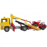 Der Bruder Abschleppwagen MAN ist das ideale Spielzeug für Kinder, die Simulationen und das Spielen mit realistischen Automodellen lieben. Der Wagen verfügt über eine klappbare Kabine, die Einblick in den Motorraum gewährt, und ist mit einer Windschutzscheibe aus strapazierfähigem Polycarbonat ausgestattet. Hinter der Kabine befindet sich ein drehbarer Manipulationsarm mit Ketten zur einfachen Handhabung des Jeeps.