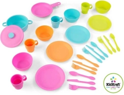 Das Kindergeschirr-Set KIDKRAFT BRIGHT bietet realistischen Spielspaß rund ums Kochen und Servieren. Dank der 27 Teile haben kleine Köche viel Freude beim Anrichten ihrer Lieblingsgerichte. Der robuste und sichere Kunststoff ist pflegeleicht und eignet sich für den täglichen Gebrauch.