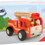 Dieses hölzerne Feuerwehrauto begeistert kleine Retter mit realistischen Details und einer langlebigen Konstruktion. Die dreh- und ausziehbare Leiter ermöglicht das Erreichen schwer zugänglicher Stellen, während leichtlaufende Räder eine sanfte Fahrt durchs Kinderzimmer gewährleisten. Zwei Feuerwehrfiguren mit Helmen verleihen den Geschichten die richtige Portion Spannung und Fantasie.
