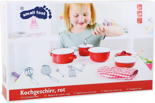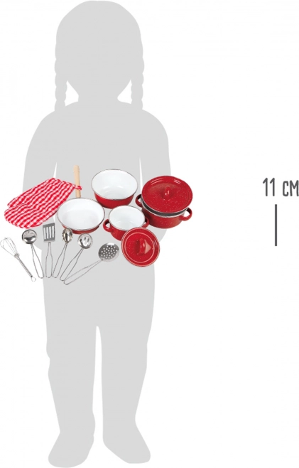 Dieses wunderschöne rote Set aus Metallgeschirr ist perfekt für alle kleinen Köche. Es enthält verschiedene Küchenutensilien wie einen Topf, eine Pfanne, einen Topflappen und weitere Hilfsmittel, die Kindern helfen, sich wie echte Küchenchefs zu fühlen. Es ist großartig für interaktives Spielen und die Förderung kreativen Denkens.