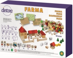 Dieser Holzbaukasten enthält verschiedene Formen, Farben und Größen der Teile, die es Kindern ermöglichen, ihre eigene Bauernhofszenerie zu erstellen. Die Teile sind mit attraktiven Icons bedruckt, die ländliche Motive, insbesondere Tierfiguren darstellen, und fördern so die Kreativität der Kinder.