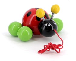 Dieser klassische Zieh-Marienkäfer aus lackiertem Holz begeistert mit seinem farbenfrohen Design, der glatten Oberfläche und den elastischen Fühlern, die beim Ziehen fröhlich wippen. Dank der runden Räder ist die Fahrt sanft, und Kinder trainieren auf natürliche Weise die Koordination ihrer Schritte sowie Sicherheit beim Gehen.