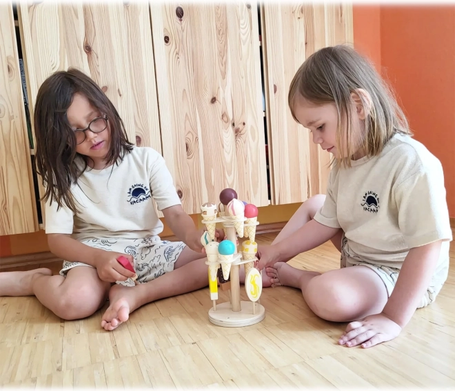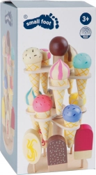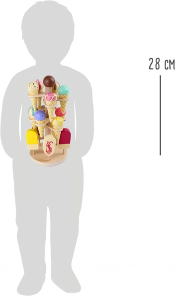 Der kleine Holz-Eisstand Small Foot ermutigt Kinder zu kreativem Spielen und hilft ihnen gleichzeitig, kognitive und Kommunikationsfähigkeiten zu entwickeln. Dieses farbenfrohe Set enthält drei Ebenen mit zehn Eissorten und fünf Eis am Stiel, die in runde Öffnungen oder in den Standfuß gesteckt werden können.