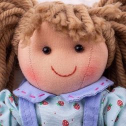 Die Stoffpuppe Grace besteht aus weichem Textilmaterial, das Sicherheit und Komfort beim Spielen gewährleistet.
