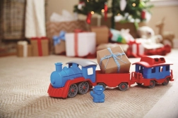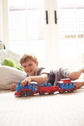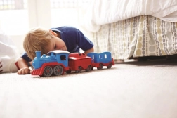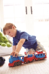 Der blaue Zug von Green Toys ist das ideale Spielzeug zur Förderung kindlicher Fantasie und Feinmotorik. Die Dampflokomotive zieht zwei leicht abnehmbare Waggons, und der Zug besteht aus 4 Teilen in einer schönen Farbkombination. Im Set sind zwei niedliche Figuren der Bären-Schaffner enthalten.