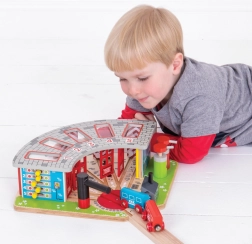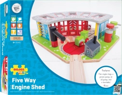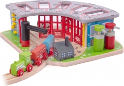Das Holzdepot ist für fünf verschiedene Züge konzipiert und verfügt über einen funktionsfähigen Drehteller, der eine einfache Bewegung der Züge zwischen den verschiedenen Garagen ermöglicht. Das System umfasst öffnende Türen und eine Tankstelle, was zum realistischen Spielvergnügen beiträgt.