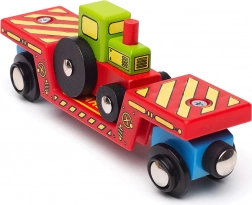 Dieses farbenfrohe Set bringt noch mehr Fantasie in die Kinderwelt der Eisenbahn. Der Traktor kann vom Wagen abgenommen und im Bauernhof-Spiel eingesetzt werden, oder mithilfe der Ladefläche aufgeladen und auf die Reise über die Schienen geschickt werden. Dank der Magnetkupplungen verbindet sich der Wagen schnell mit der Lokomotive und weiteren Waggons – die Erweiterung des bestehenden Zuges ist in wenigen Augenblicken erledigt.