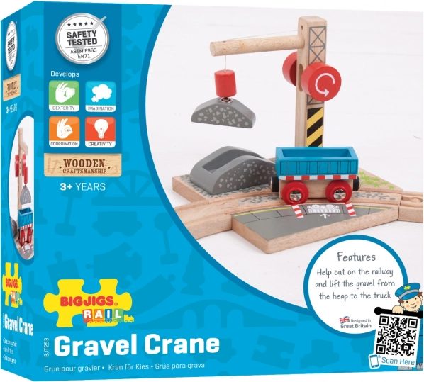 Die Bigjigs Rail hölzerne Eisenbahnkran mit Kies-System ist eine großartige Ergänzung für jede Kinder-Eisenbahnsammlung. Dieser hochwertige Kran ist mit einem magnetischen Flaschenzug ausgestattet, der einfaches Heben und Senken von Lasten ermöglicht und kreatives, interaktives Spielen fördert.