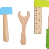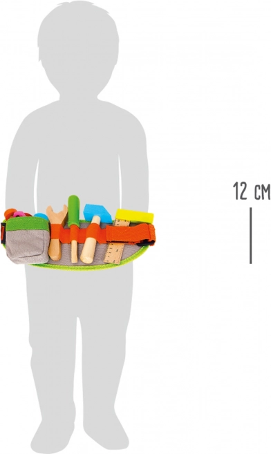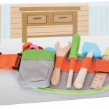 Der Werkzeuggürtel enthält bunte Holzwerkzeuge, die die Entwicklung der Feinmotorik und kreatives Spielen fördern.