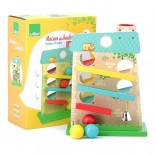 Das hölzerne Kaskadenhaus von VILAC begeistert kleine Kinder mit der unterhaltsamen Fahrt der Bälle und seinem ansprechenden Design. Es bietet 3 Rampen auf beiden Seiten, auf denen Holzbälle von oben nach unten herunterkullern und am Ziel eine Metallglocke erklingen lassen. Das Spielzeug in Pastellfarben fördert Geschicklichkeit und logisches Denken und sorgt für stundenlangen Spielspaß.