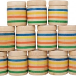 12 Holzdosen mit farbigen Streifen bieten ein ästhetisches und zugleich praktisches Spiel, das robust und langlebig ist.