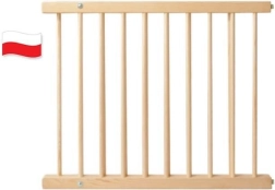 Das Gitter funktioniert als aufklappbarer Flügel – auf der einen Seite robuste Scharniere, auf der anderen Schieberriesen mit doppelter Sicherung. Starke Sprossen (19 mm) sorgen für Widerstandsfähigkeit und Stabilität. Die Montage ist einfach und flexibel: an Wand, Türzarge, Holzelementen oder Geländer. Geeignet für Kinder und Haustiere.