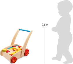 Entdecken Sie die ideale Unterstützung für die ersten Schritte – eine Holzlauflernhilfe mit Wagen voller bunter Bausteine. Die robuste Konstruktion aus Massivholz und Sperrholz bietet Stabilität, während Buchenholz-Bausteine in verschiedenen Formen (ca. 5–10 cm) zu kreativem Spiel einladen. Dank des bequemen Griffs in 39 cm Höhe fühlen sich Kinder sicher und geborgen.