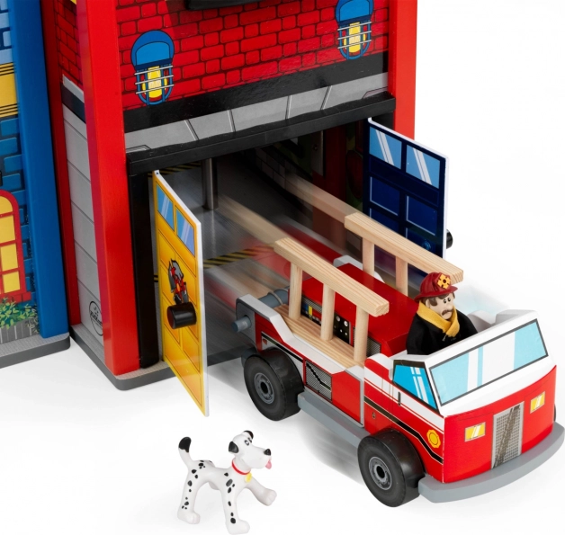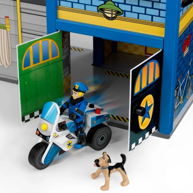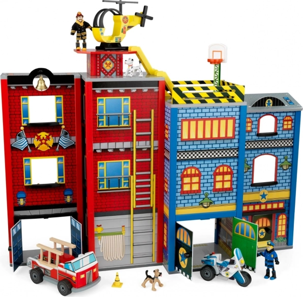 - **3 Fahrzeuge inklusive:** Ein Feuerwehrauto, Polizeimotorrad und Hubschrauber.