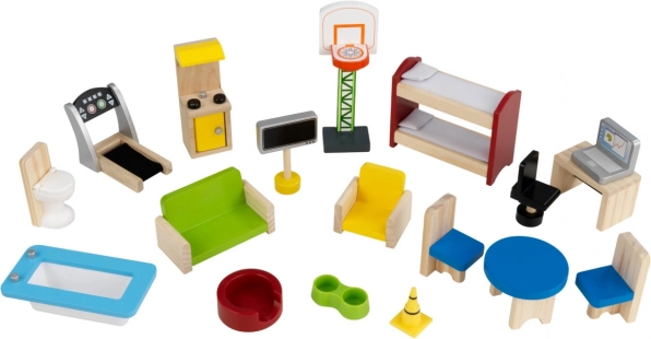 - **Insgesamt 24 Zubehörteile:** umfasst figuren mit beweglichen Gliedmaßen, Fahrzeugen und Möbeln.