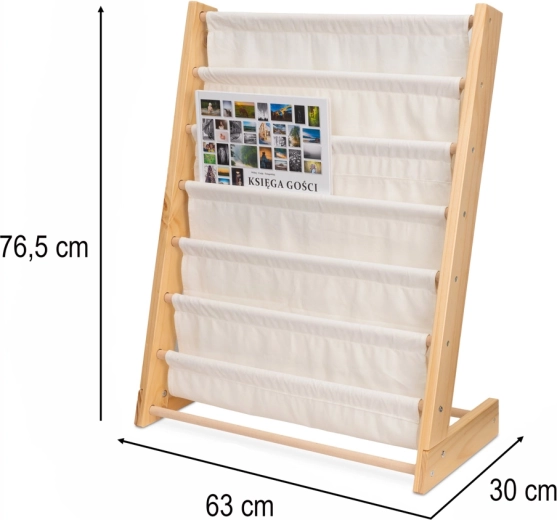 Das Regal besteht aus Naturholz und hochwertigem Baumwollstoff, verfügt über glatte Kanten und eine stabile Konstruktion für maximale Sicherheit. Der zeitlose Look aus Holz und Weiß passt zu jedem Interieur und unterstützt gesunde Lesegewohnheiten sowie Ordnung lernen.