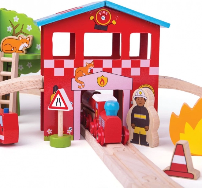 Das Set umfasst die Feuerwache, einen Zug mit Waggons, ein Feuerwehrauto, Figuren und umfangreiches Zubehör. Ideal für spannende Rettungseinsätze und stundenlangen Spielspaß.