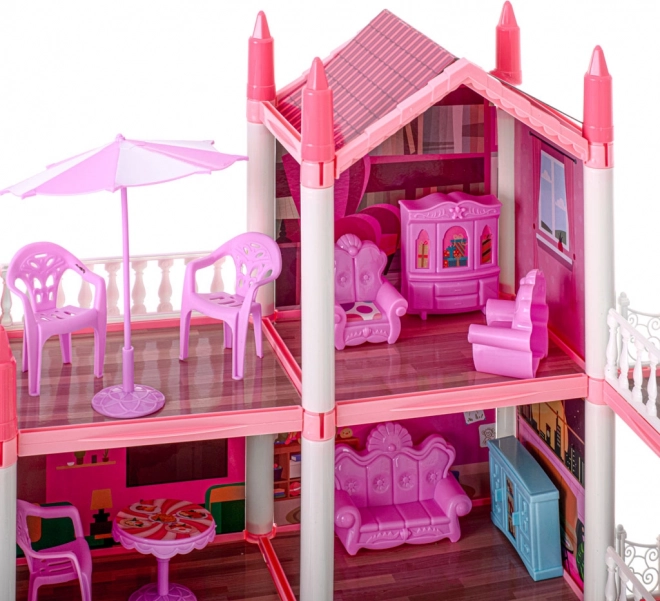 Die Rosa Puppenvilla hat vier Etagen, die faszinierende und vielseitige Räume zum Entdecken bieten.