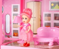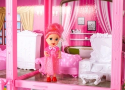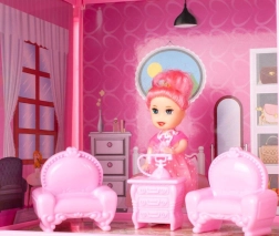 Im Lieferumfang ist eine komplette Ausstattung enthalten: Bett, Sofas, Sessel, Schminktisch, Schrank, Kommode, Lampe und mehr. Kinder können das Interieur nach Belieben umgestalten.