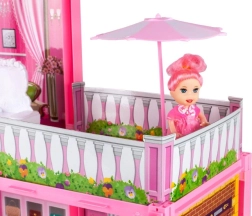 Das Haus bietet einen geräumigen Balkon mit Sonnenschirm – der ideale Platz für die Puppe zum Ausruhen und für das Sitzen im Freien. Perfekt, um Geschichten und Szenen aus dem Alltag zu erschaffen.
