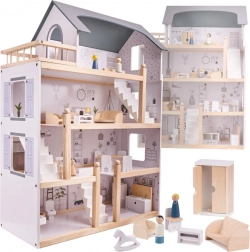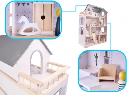 Helles hölzernes Puppenhaus mit Möbeln – 80 cm