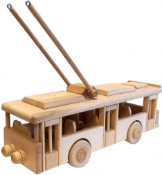 Der Trolleybus besteht aus hochwertigem hartem Buchenholz mit glatter Oberfläche und abgerundeten Kanten für sicheres Spielen.