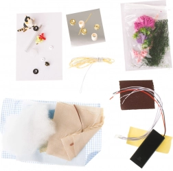 Im Lieferumfang ist alles enthalten: Bauteile des Zimmers, Ausstattungselemente und Dekorationen, Kleber sowie eine ausführliche Anleitung mit Bildern. Die Beleuchtung wird mit 2× AAA 1,5 V und 3× LR54 1,5 V betrieben (Batterien sind nicht im Lieferumfang). Empfohlen ab 8 Jahren. Das fertige Modell misst 17,1 × 13 × 11,6 cm; die Verpackung 25 × 18 × 6 cm.