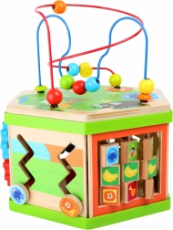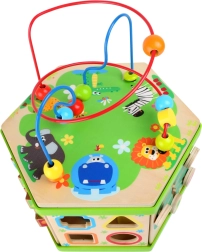 Während die Kinder spielen, entwickeln sie gleichzeitig ihre feine Motorik und Hand-Augen-Koordination. Der Innenraum des Würfels dient als geheime Kammer für Zubehör, hält Ordnung und fördert gleichzeitig die Fantasie der Kinder. Mit einem Aufdruck attraktiver Tierillustrationen passt er in jedes Kinderzimmer.