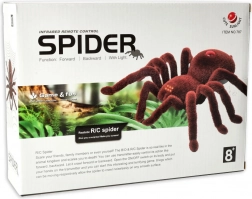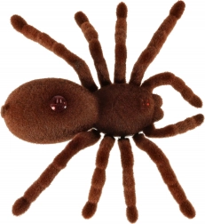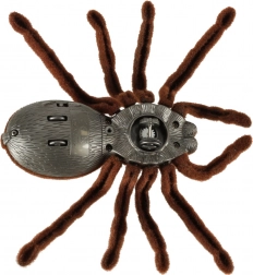 Die Fernbedienung ermöglicht vorwärts-, rückwärts-Fahrt und Linkskurven. Die Spinne bewegt sich mithilfe unauffälliger Räder, und ihre leuchtenden Augen verstärken den Eindruck eines echten Jägers. Der Körper ist mit flauschigem Material überzogen, auf der Rückseite befindet sich ein Sensor zum Empfang des Steuersignals.