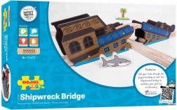 Die Bigjigs Rail Schiffswrack-Brücke verleiht Ihrer Eisenbahnwelt eine abenteuerliche Atmosphäre. Die zwei stabilen Teile lassen sich im Handumdrehen zu einer eindrucksvollen Überführung oder einem Tunnel zusammensetzen, sodass die Züge sowohl über als auch durch das dekorierte Wrack fahren können. Das Thema Piraten und Meereswellen regt zu kreativen Geschichten und stundenlangem Spielspaß an.