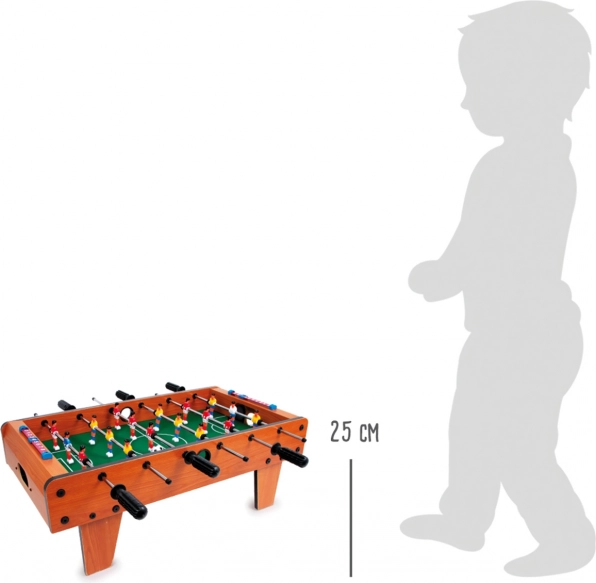 Die Kombination aus Holz, Metall und Kunststoff garantiert Stabilität und lange Lebensdauer. Das Spielfeld 60 × 34 cm bietet ein schnelles, dynamisches Spiel.