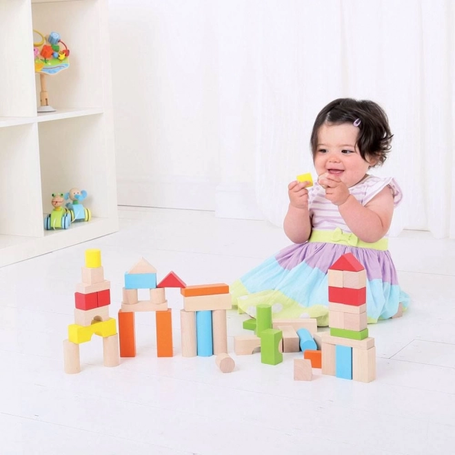 Die Klötze bieten eine breite Palette an Farbkombinationen und Formen, die kreatives Bauen und Spielen fördern.