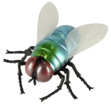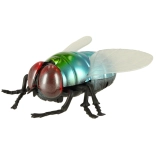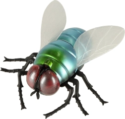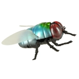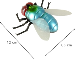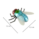 Der metallisch blau-grüne Körper, rote Augen und transparente Flügel machen das Spielzeug zu einer naturgetreuen Nachbildung einer Fliege – perfekt für Streiche und Bildung.