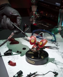 Der Bausatz kombiniert präzise lackierte und bedruckte Metall- und Kunststoffteile. Dank der Touch-Steuerung im Sockel lässt sich das Modell bequem ein- und ausschalten. Das Set wird unmontiert geliefert und enthält eine detaillierte Anleitung, die Sie Schritt für Schritt durch die gesamte Montage führt.