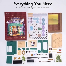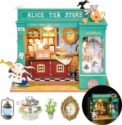 Erschaffen Sie Ihr eigenes magisches Miniaturprojekt, inspiriert vom Märchen ALICE IM WUNDERLAND. Dieses detailreiche DIY-Häuschen Alices Teeladen von ROBOTIME Rolife bietet LED-Beleuchtung, zahlreiche präzise Accessoires und eine einfache Montage dank vieler vorgefertigter Teile. Eine großartige Wahl für kreative Entspannung, als Geschenk und als stilvolle Dekoration für Ihr Zuhause.