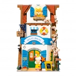 Zum Bausatz gehört sämtliches benötigtes Zubehör, einschließlich Holzteilen, Dekorationen, Farben und Kleber. Ebenfalls enthalten sind Pinsel und Pinzette für eine einfache und präzise Montage. Die Beleuchtung lässt sich leicht installieren und über einen Schalter an der Vorderseite des Modells bedienen.