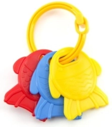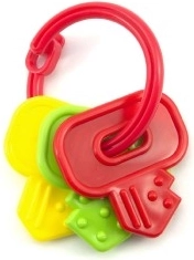 Leichte und leicht greifbare Rassel in Schlüsselform, ideal für kleinste Händchen. Drei Kunststoffanhänger erzeugen ein angenehmes Rasselgeräusch, das die Aufmerksamkeit des Babys fesselt und seine Sinne fördert. Die robuste Ausführung eignet sich für den täglichen Gebrauch zu Hause und unterwegs.