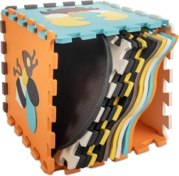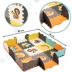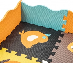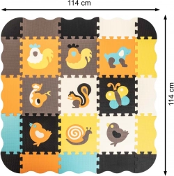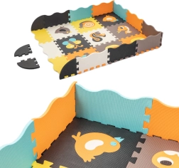 Diese große Schaumstoffmatte besteht aus 25 Teilen (9 Hauptplatten mit herausnehmbaren Tierformen und 16 Randrahmen). Dank der gröberen Oberflächenstruktur und kontrastreichen Farben stimuliert sie natürlich Sehen und Tastsinn. Weicher EVA-Schaum dämpft Stürze bei den ersten Schritten und schützt vor Kälte vom Boden.