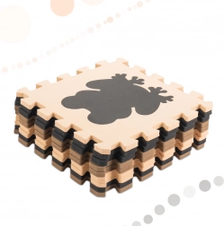 Kontrastfarben und die reliefartige Struktur stimulieren Sicht- und Tastsinn, die herausnehmbaren Formen unterstützen die Entwicklung der Feinmotorik, das logische Denken und das Erlernen von Formen. Die Teile lassen sich zu einer flachen Matte zusammenfügen oder zu 3D-Konstruktionen und einem Spielzaun für eine begrenzte Spielzone bauen.
