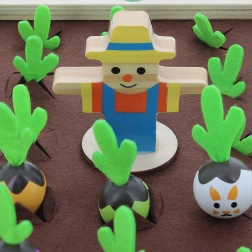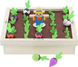 Entdeckt den Zauber des Gartens am Familientisch. Dieses wunderschöne Holzspiel mit Filzelementen bringt farbenfrohe Gemüsefiguren und Rezeptkarten mit, durch die Kinder Formen, Farben und logische Zusammenhänge erkennen lernen. Spielt klassisches Memory oder kocht gemeinsam Suppe nach Rezepten – immer mit der Spannung, ob nicht doch ein freches Kaninchen auftaucht.