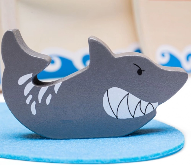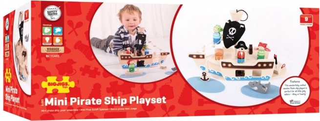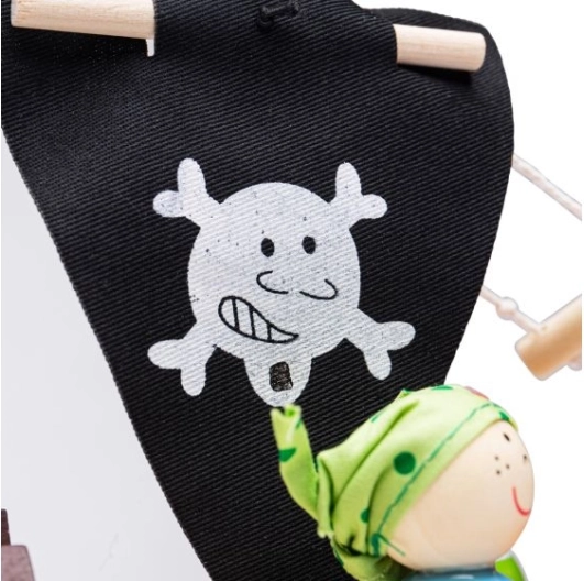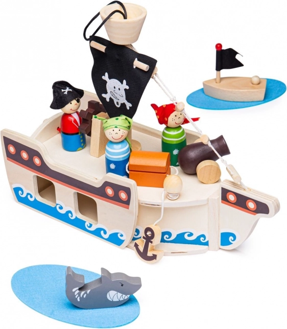Dieses Holzpiratenschiff-Set enthält alles, was kleine Piraten für ihre Abenteuer brauchen. Das Set umfasst einen Kapitän, zwei Piraten, ein Schiff, einen Anker, eine Schatztruhe und einen Hai. Alle Spielteile können praktisch im Schiff verstaut werden, was ideal für Reisen und einfaches Tragen ist.